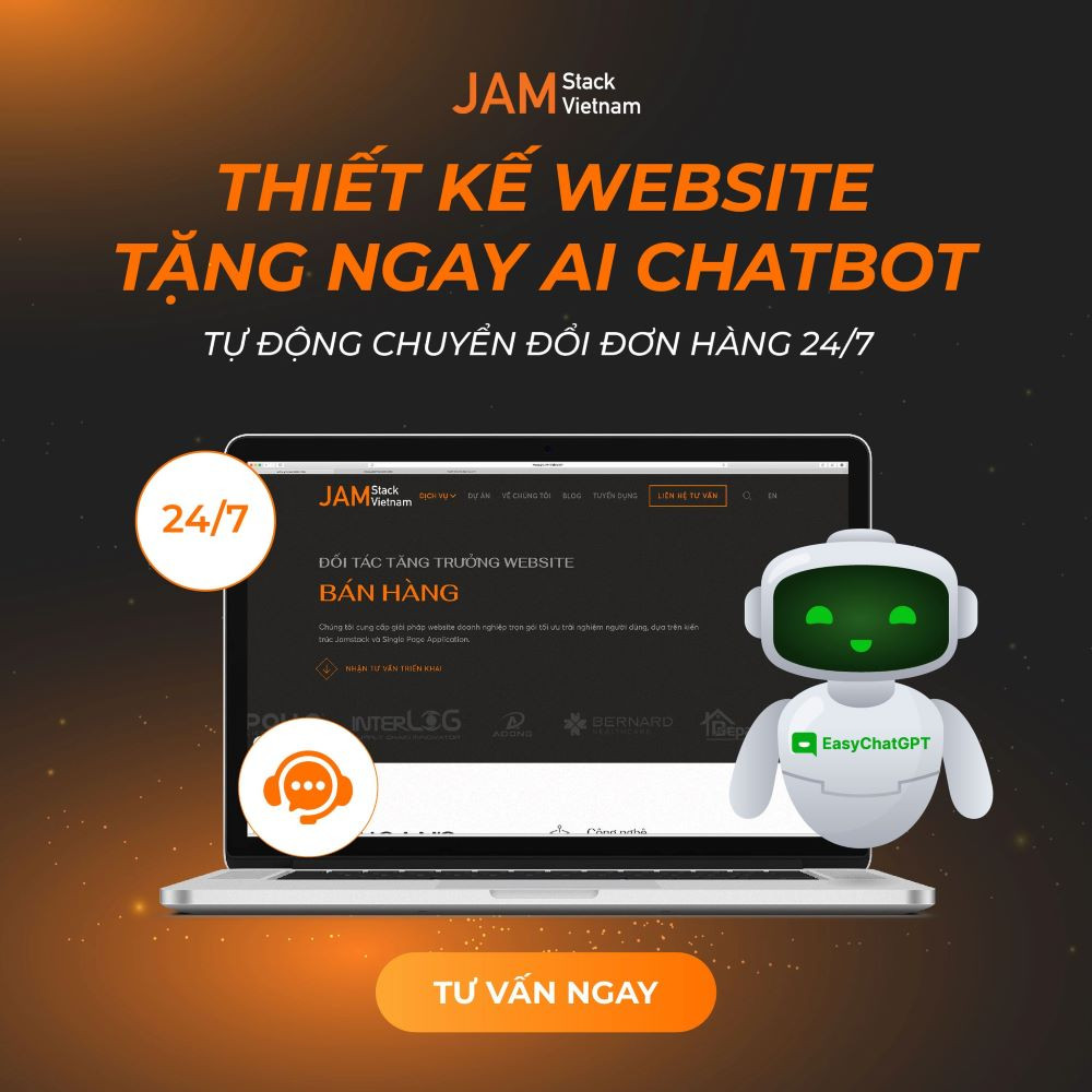 Cùng với đó, JAMstack Vietnam luôn đón đầu xu thế công nghệ với việc ứng dụng trí tuệ nhân tạo (AI) vào thiết kế website. AI giúp tăng cường trải nghiệm người dùng thông qua các công cụ hỗ trợ như chatbot tư vấn, cá nhân hóa nội dung và gợi ý sản phẩm thông minh. Giải pháp thiết kế website tích hợp AI Chatbot - Easy ChatGPT là minh chứng cho sự nỗ lực nghiên cứu không ngừng của đội ngũ JAMstack Vietnam trong việc cung cấp những giải pháp phát triển web hiện đại, giúp doanh nghiệp sở hữu website chất lượng, tối ưu hiệu quả kinh doanh.